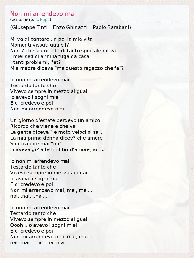 А как ты думаешь, о чем песня "Non mi arrendevo mai" ?