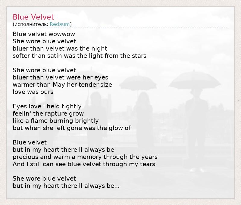 А как ты думаешь, о чем песня "Blue Velvet" ?