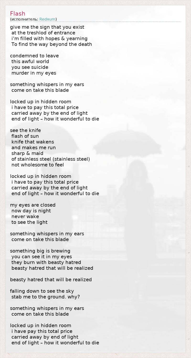 Это интересно:Redrum (often stylized as REDRUM) is a Japanese indie rock band who formed in 1996 with the decisive goal of becoming a band similar to Portishead for Japan. The members of the band consist of Yumi (vocals), Tsuyoshi (guitar) and Kazi (drums). The role of bassist officially changed two times and was helmed primarily by Soto who joined the band early on and stayed until his departure in December 2004. Their catalogue of works consists of only a few proper albums, several mini albums and maxi singles. Some of their releases were available exclusively through mail order or at their shows and have since become out of print.In April 2006 the band announced that they would be going on an indefinite... продолжение
