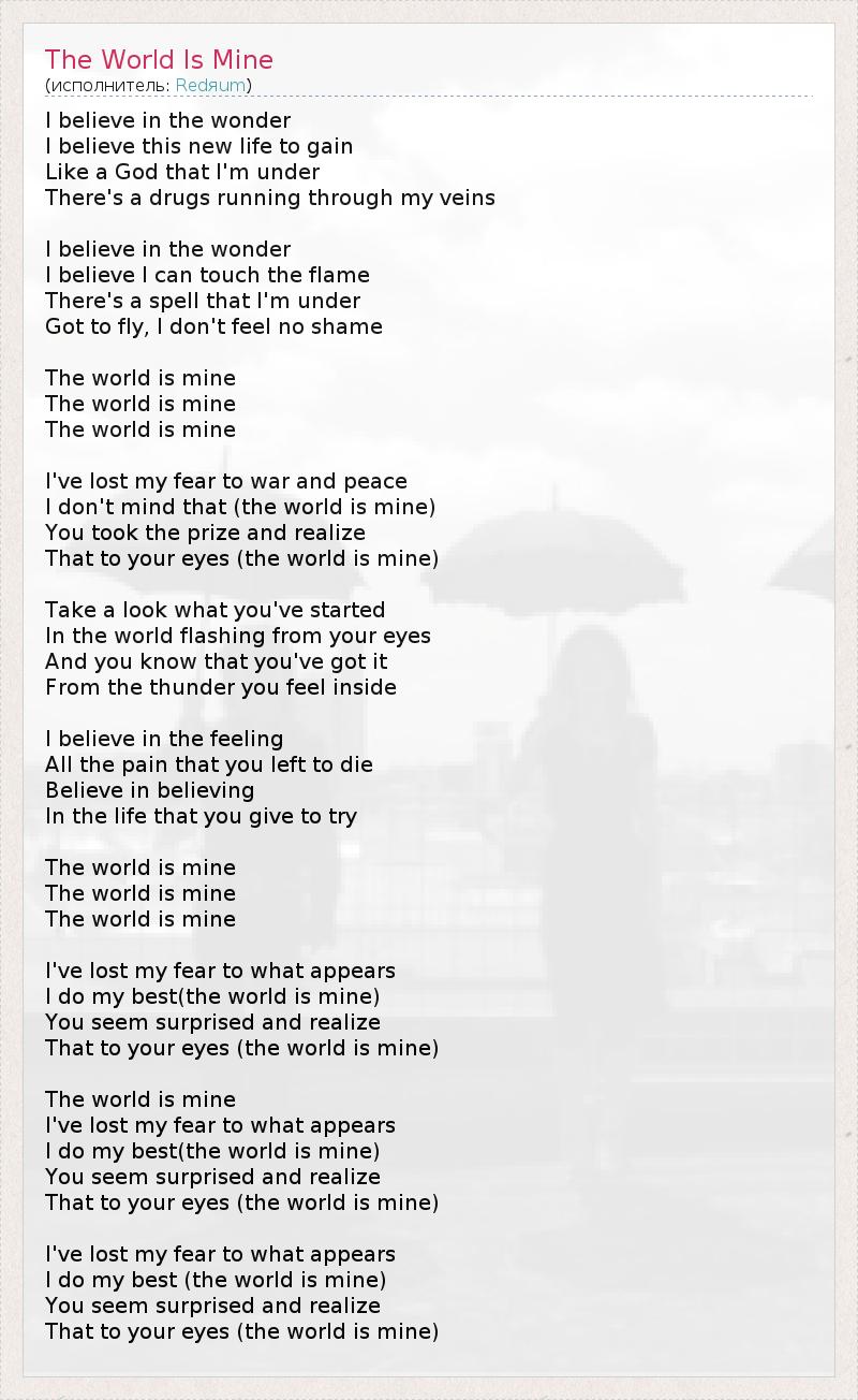 А как ты думаешь, о чем песня "The World Is Mine" ?