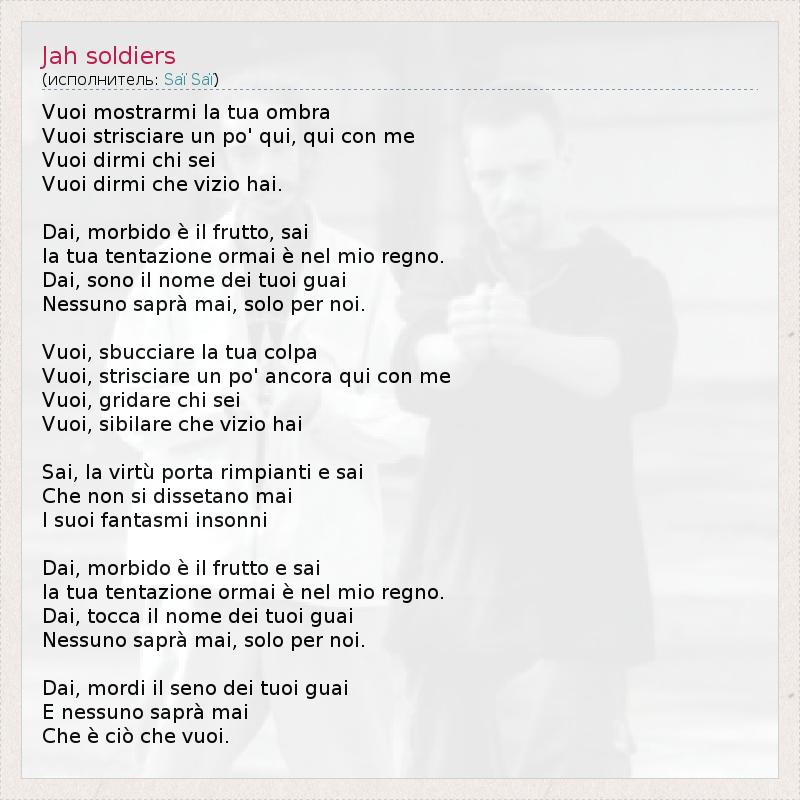 А как ты думаешь, о чем песня "Jah soldiers" ?