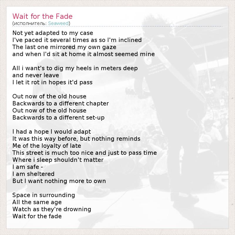 А как ты думаешь, о чем песня "Wait for the Fade" ?