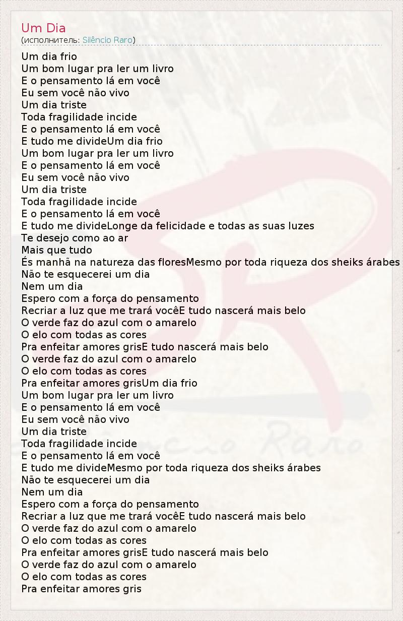 А как ты думаешь, о чем песня "Um Dia" ?