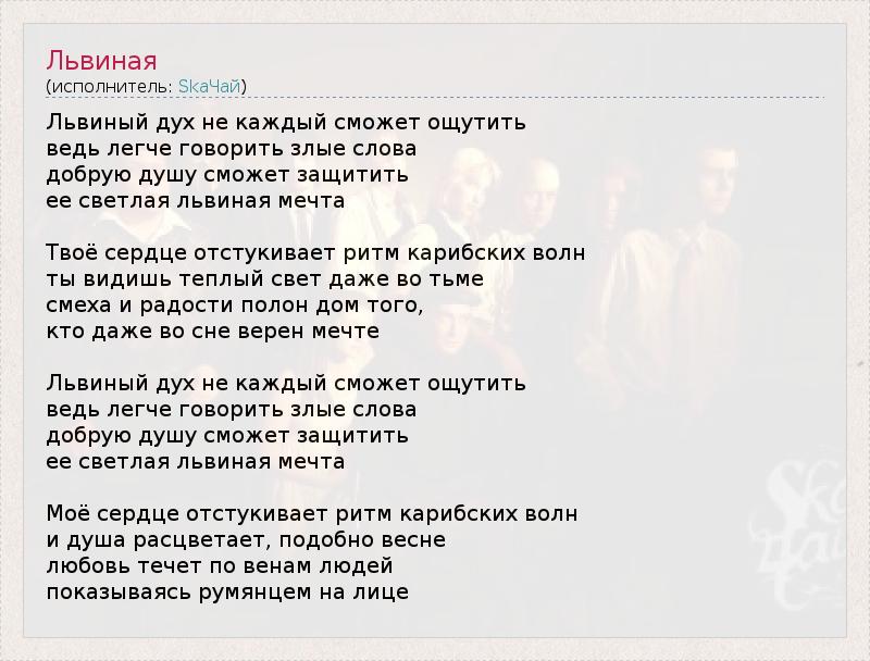 Это интересно:Группа «SkaЧай» была основана 10 ноября 2007 года в Екатеринбурге. За это время группа стала самым знаковым Ska - Reggae коллективом Екатеринбурга.Группа «SkaЧай» выступала на многих фестивалях Урала, Москвы, и в клубах по всей России. А также с многими именитыми бандами России и Мира!Такими как SKATALITES, DISTEMPER, ZION TRAIN, SPITFIRE, ЭЛИЗИУМ, ЛЯПИС-ТРУБЕЦКОЙ, MALE FACTORS, ДАБАЦ, DUB DIVISION, КАНИКУЛЫ БОНИФАЦИЯ…... продолжение