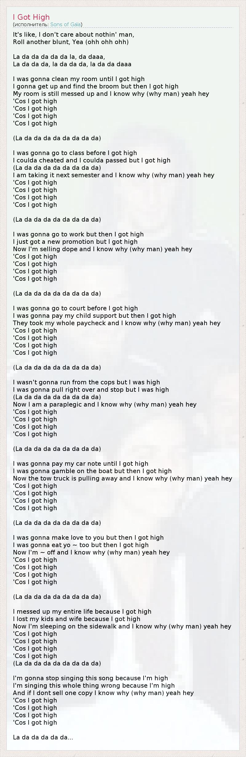 А как ты думаешь, о чем песня "I Got High" ?