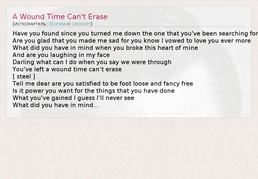 А как ты думаешь, о чем песня "A Wound Time Can't Erase" ?
