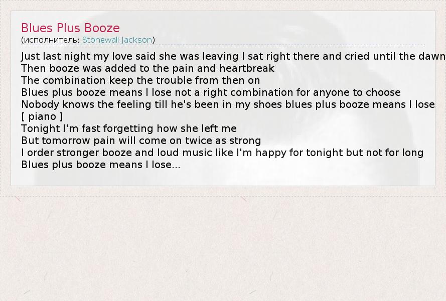 А как ты думаешь, о чем песня "Blues Plus Booze" ?