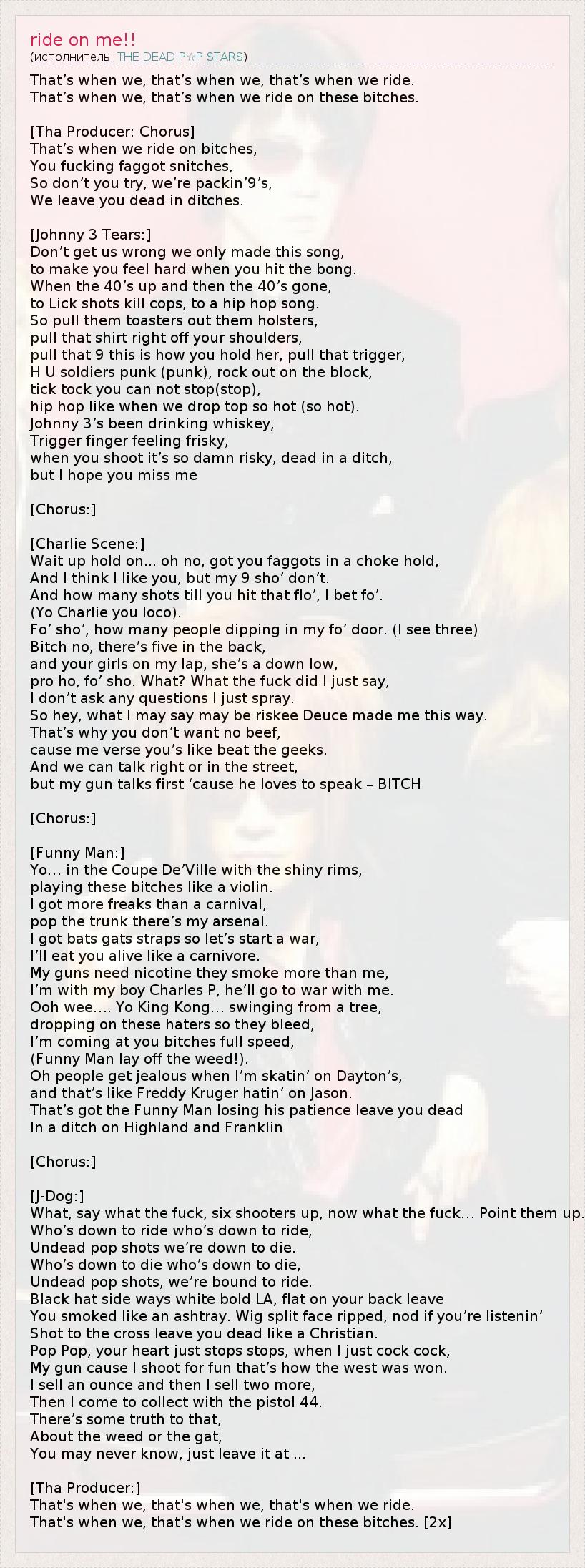 Вот когда, вот когда, вот когда мы ездим верхом на этих суч*ах. [2 раза]