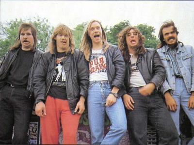 Свой первый концерт группа отыграла в школьных стенах 28 мая 1983 года. Юные музыканты во время него подогревали себя пивом, которое притащили в пакетах из-под молока, поскольку официально в школе распивать пиво не разрешалось. К тому времени образовавшуюся вакансию второго гитариста (а им был Бернард Рапприх) занял большой поклонник AC/DC Энди Булгаропулос.