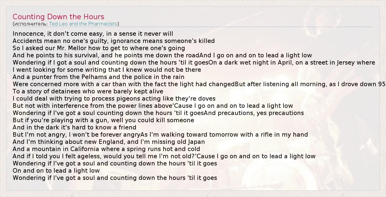 А как ты думаешь, о чем песня "Counting Down the Hours" ?