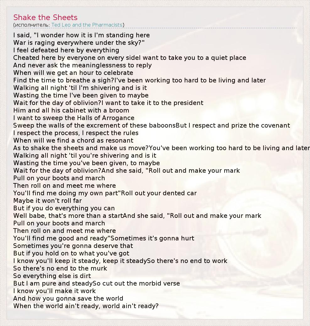 А как ты думаешь, о чем песня "Shake the Sheets" ?