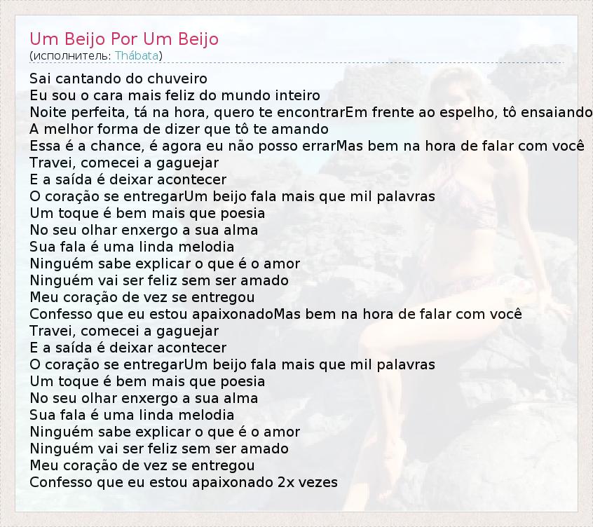 ГлавнаяИсполнителиThábataUm Beijo Por Um Beijo