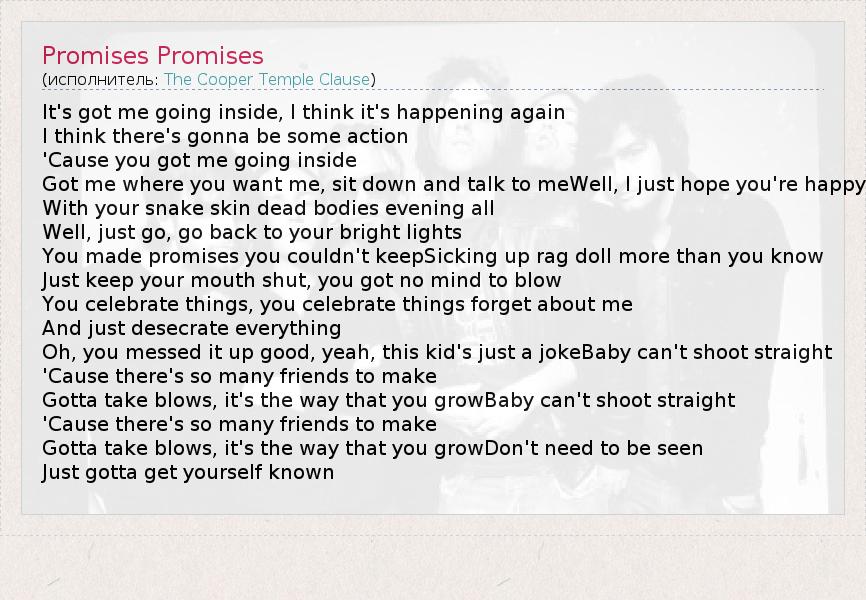 А как ты думаешь, о чем песня "Promises Promises" ?