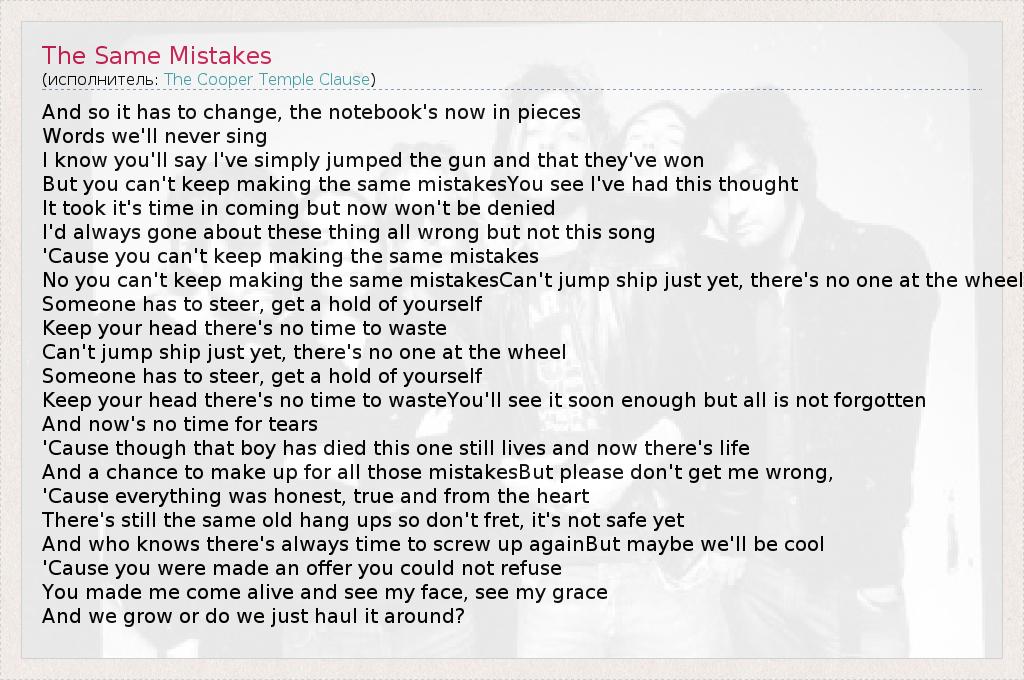 А как ты думаешь, о чем песня "The Same Mistakes" ?