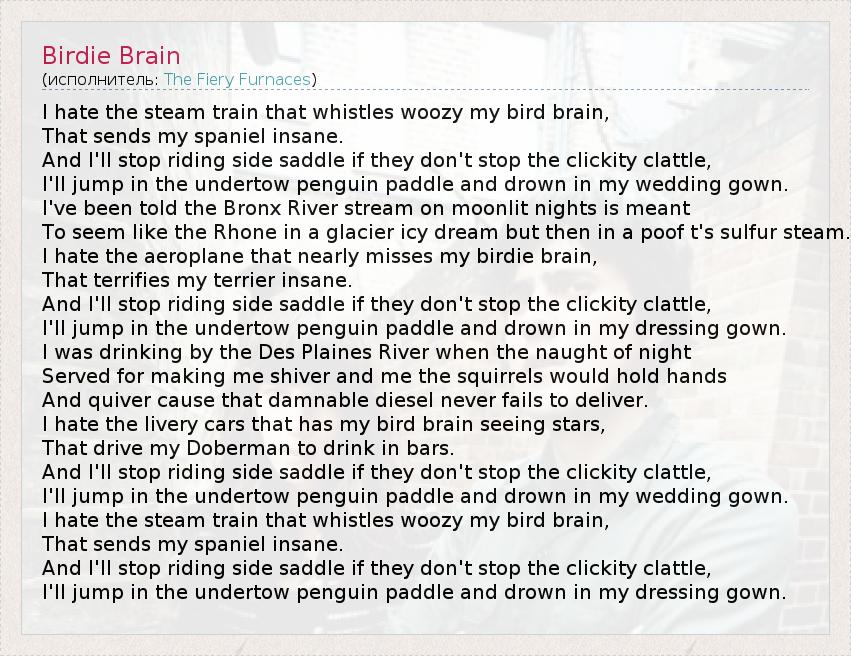 А как ты думаешь, о чем песня "Birdie Brain" ?