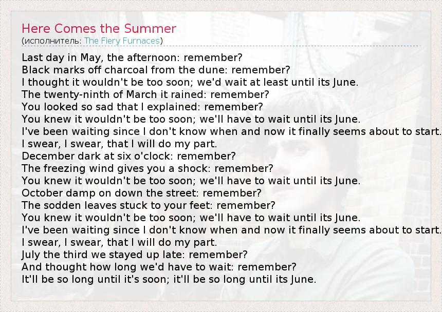 А как ты думаешь, о чем песня "Here Comes the Summer" ?