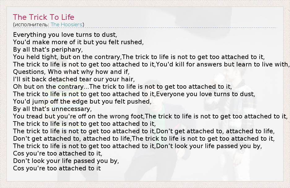А как ты думаешь, о чем песня "The Trick To Life" ?