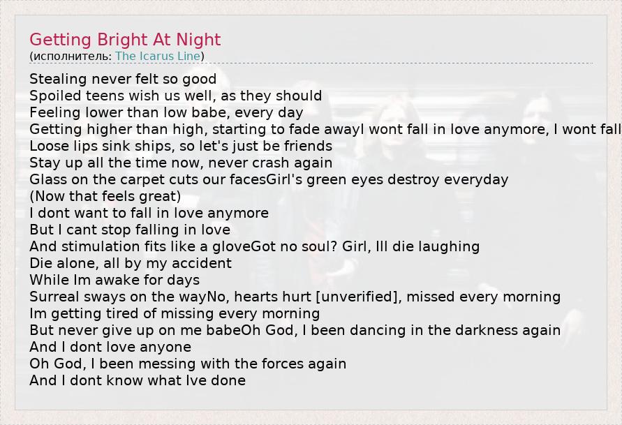 А как ты думаешь, о чем песня "Getting Bright At Night" ?