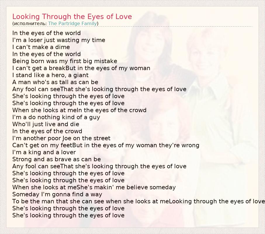 А как ты думаешь, о чем песня "Looking Through the Eyes of Love" ?
