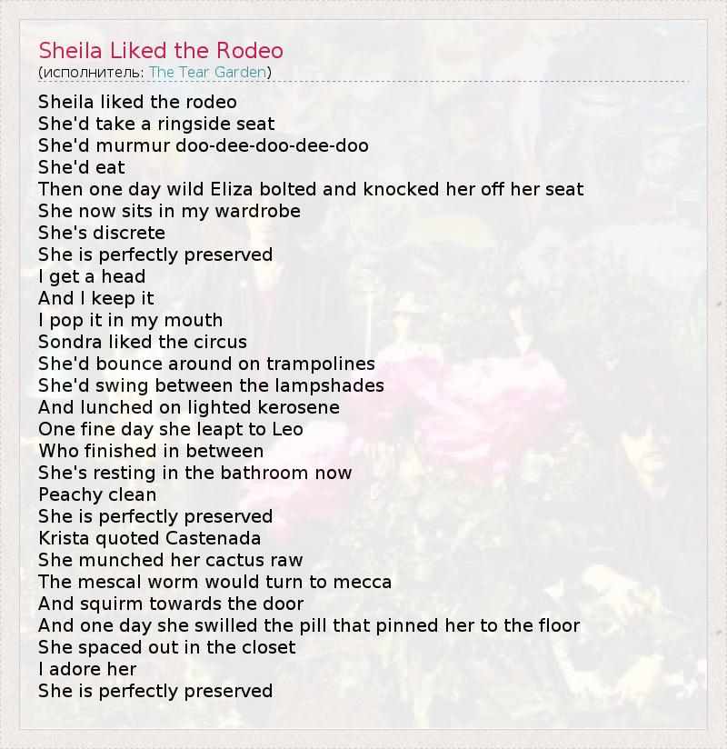 А как ты думаешь, о чем песня "Sheila Liked the Rodeo" ?