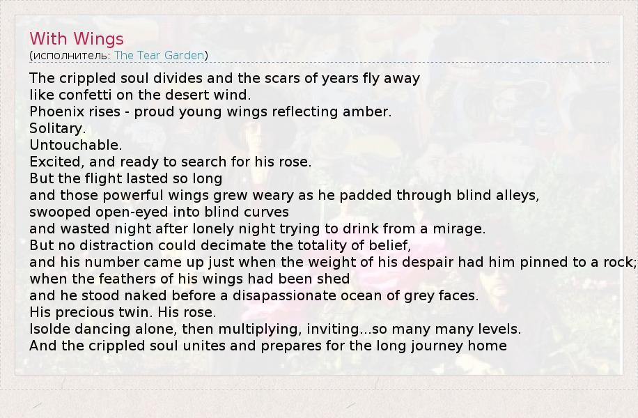 Это интересно:Группа была основана в результате знакомства музыкантов The Legendary Pink Dots и Skinny Puppy, произошедшего во время совместных американских концертов в 86-м году. Дебютным релизом стал вышедший в 86-м году на Nettwerk/PIAS EP "The Tear Garden", через год полностью включенный в CD-версию альбома "Tired Eyes, Slowly Burning". Поначалу The Tear Garden представляла из себя несколько более спокойный вариант Skinny Puppy, но с вокалом Edward... продолжение