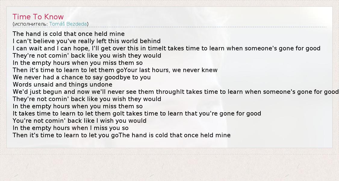 I can wait and I can hope, I'll get over this in timeIt takes time to learn when someone's gone for good