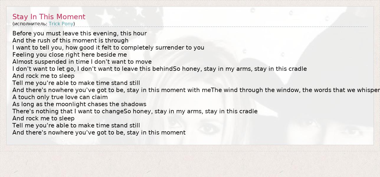 А как ты думаешь, о чем песня "Stay In This Moment" ?