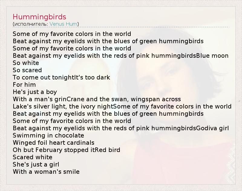 А как ты думаешь, о чем песня "Hummingbirds" ?