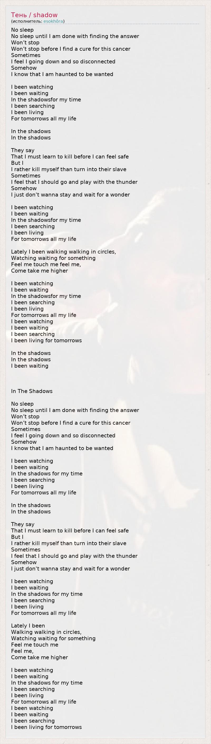 А как ты думаешь, о чем песня "Тень / shadow" ?
